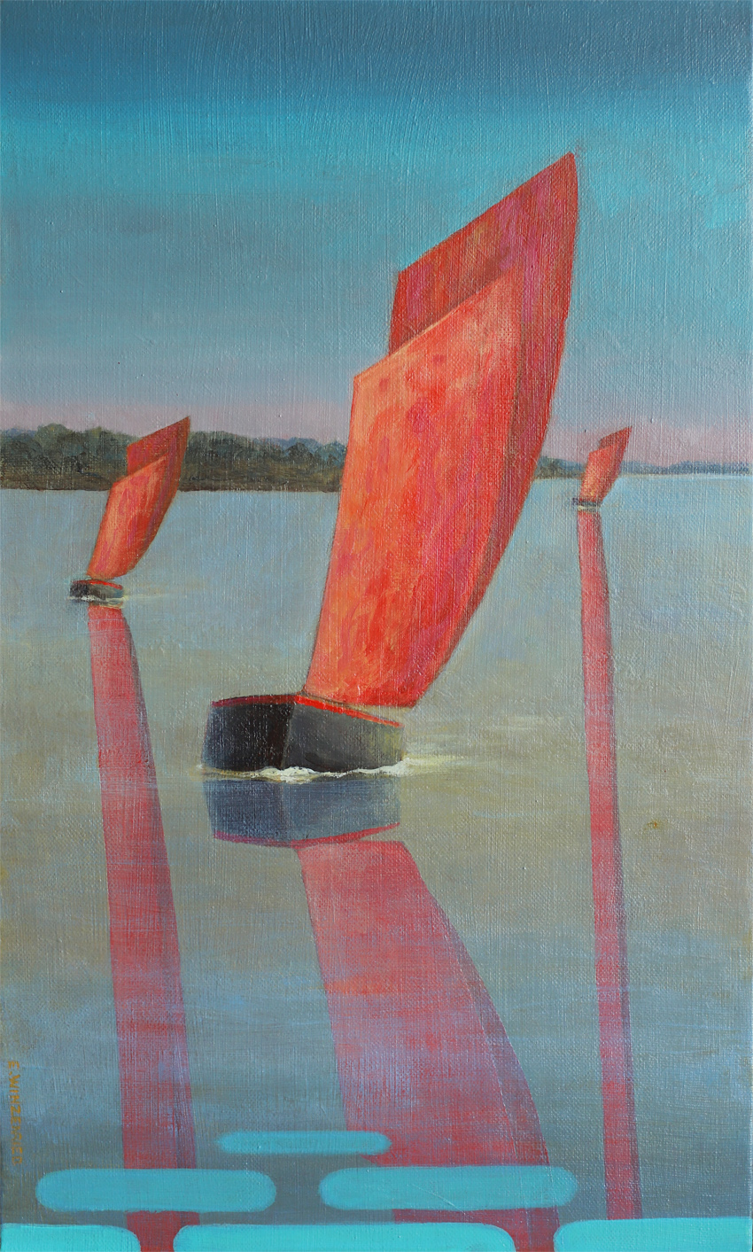 Une série plus figurative dont les sujets sont directement inspirés par la Bretagne où je suis installé. Plus jeune, mon travail classique m’a permis de me familiariser avec l’ensemble de mon environnement. L’intériorisation et l’interprétation de certains éléments ont permis de développer une expression très personnelle du paysage qui m’entoure. Une démarche contemporaine qui s’est appuyée sur un savoir-faire technique que seul le temps permet d’acquérir. La synthèse, la mise en avant de la couleur et pour les marines le travail audacieux des reflets aquatiques sont devenus ma signature picturale pour cette série très reconnaissable.