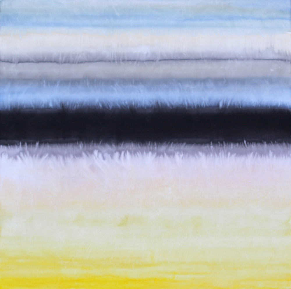 Composition contemporaine sur toile qui évoque peut être un paysage de bord de mer. Les couleurs d’une marine imaginaire inspirée par l’environnement proche de l’artiste qui vit en Bretagne sud. Une création paisible et fluide où les différents plans s’organisent avec élégance. Le titre et la signature de l’artiste se trouve au dos du tableau.