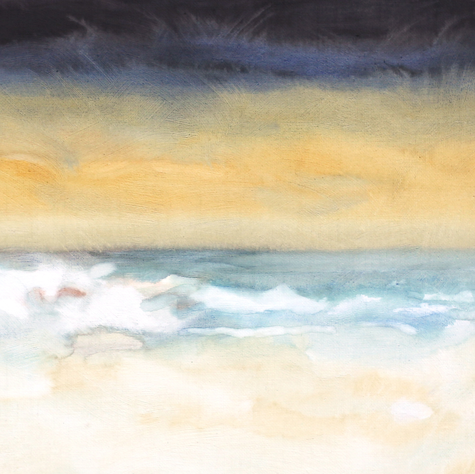 Une relecture personnelle d’une toile à l’huile très peu connue de Turner « Three seascapes » de 1827 qui se trouve à la Tate gallery London. Il s’agit d’une combinaison de trois paysages marins sur un même support. Cette création avec ses couleurs anciennes est très contemporaine. En effet l’idée de combiner plusieurs paysages sur un même support est une démarche d’une grande modernité qui ouvre des perspectives infinies. Eric Winzenried réalise son hommage à Joseph Mallord William Turner avec de l’aquarelle et de l’encre de chine sur une toile de lin. Le titre et la signature de l’artiste se trouve au dos. Le tableau est actuellement monté dans une caisse américaine de couleur noire mais vous pouvez aussi l’accrocher sans cadre.