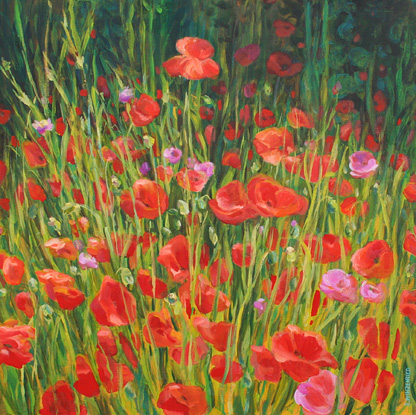Coquelicots naturels sur Tannhauser Un tableau naturel d’une grande fraîcheur pour ces coquelicots sous une belle lumière du matin.Technique: 60×60 cm / Huile sur toile – Oil on canvas / VendueRef : 35310 Série: EW Campagnes