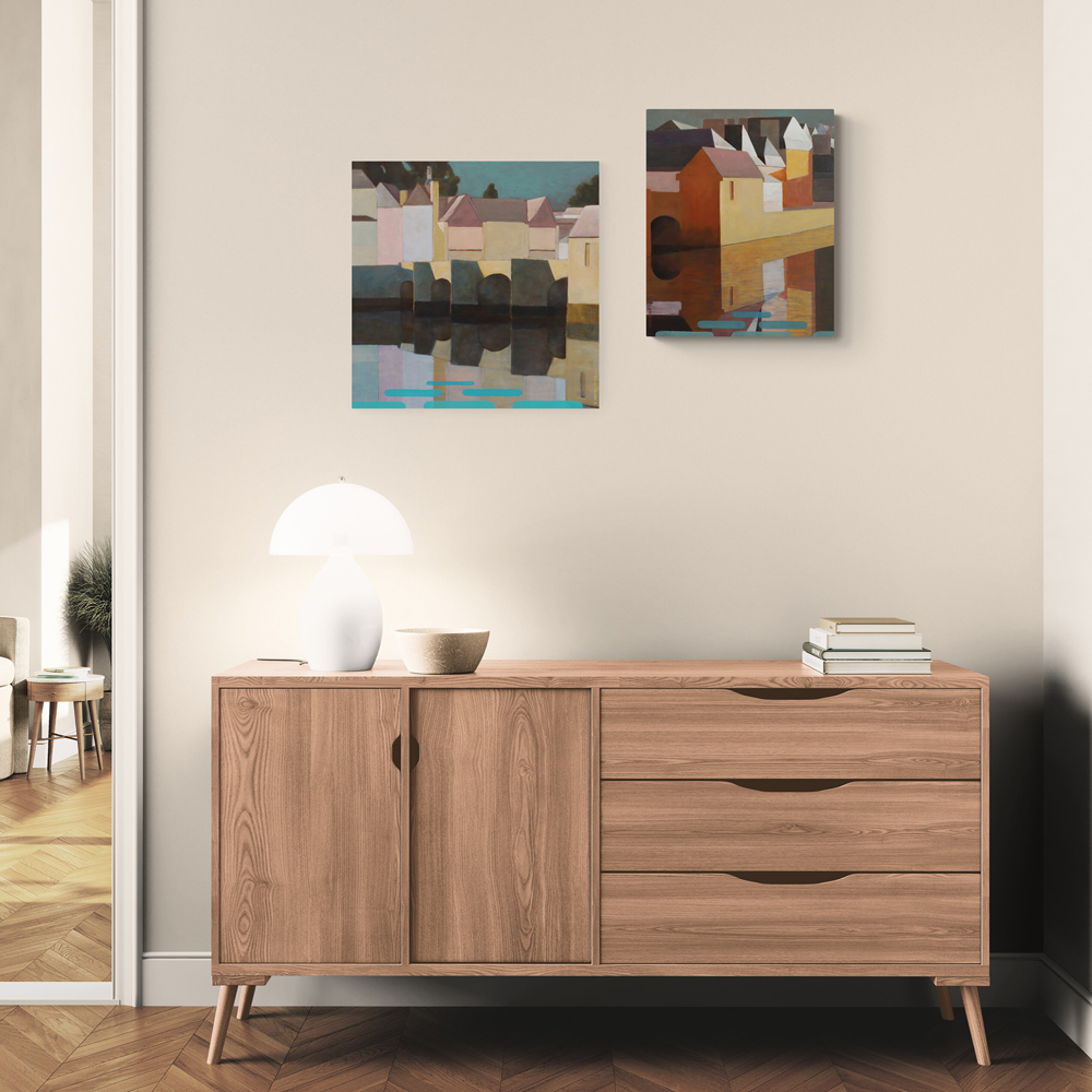 Cette œuvre est une invitation au calme et à la contemplation. J’ai joué avec la lumière du matin et simplifié les formes, créant un tableau plein de personnalité. Chaque couleur est réglée avec minutie pour traduire une atmosphère particulière à la fois simple et captivante. L’utilisation des contrastes, entre les couleurs chaudes et les couleurs froides, permet un certain dynamisme tout en conservant ici une ambiance sereine. Un tableau élégant et d’une belle présence pour votre espace de vie.